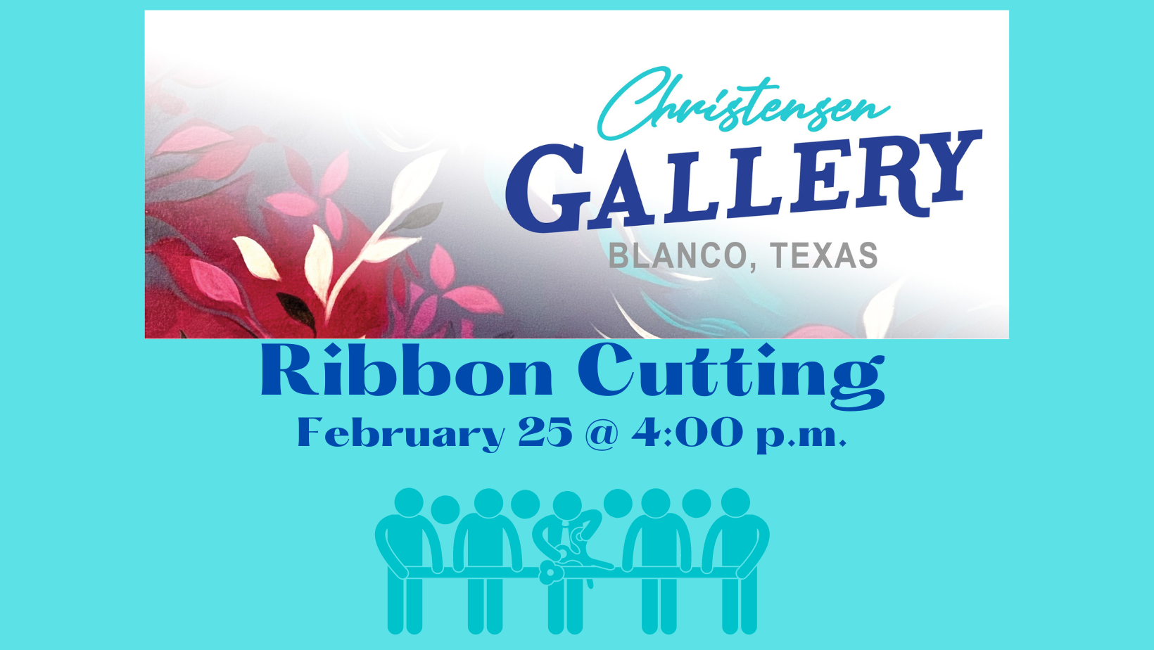 Ribbon Cutting at Christensen Gallery Saturday, February 25, 2023 4:00 PM 5:00 PM 16:00 17:00 Google Calendar ICS CHRISTENSEN GALLERY (deannchristensen.net)